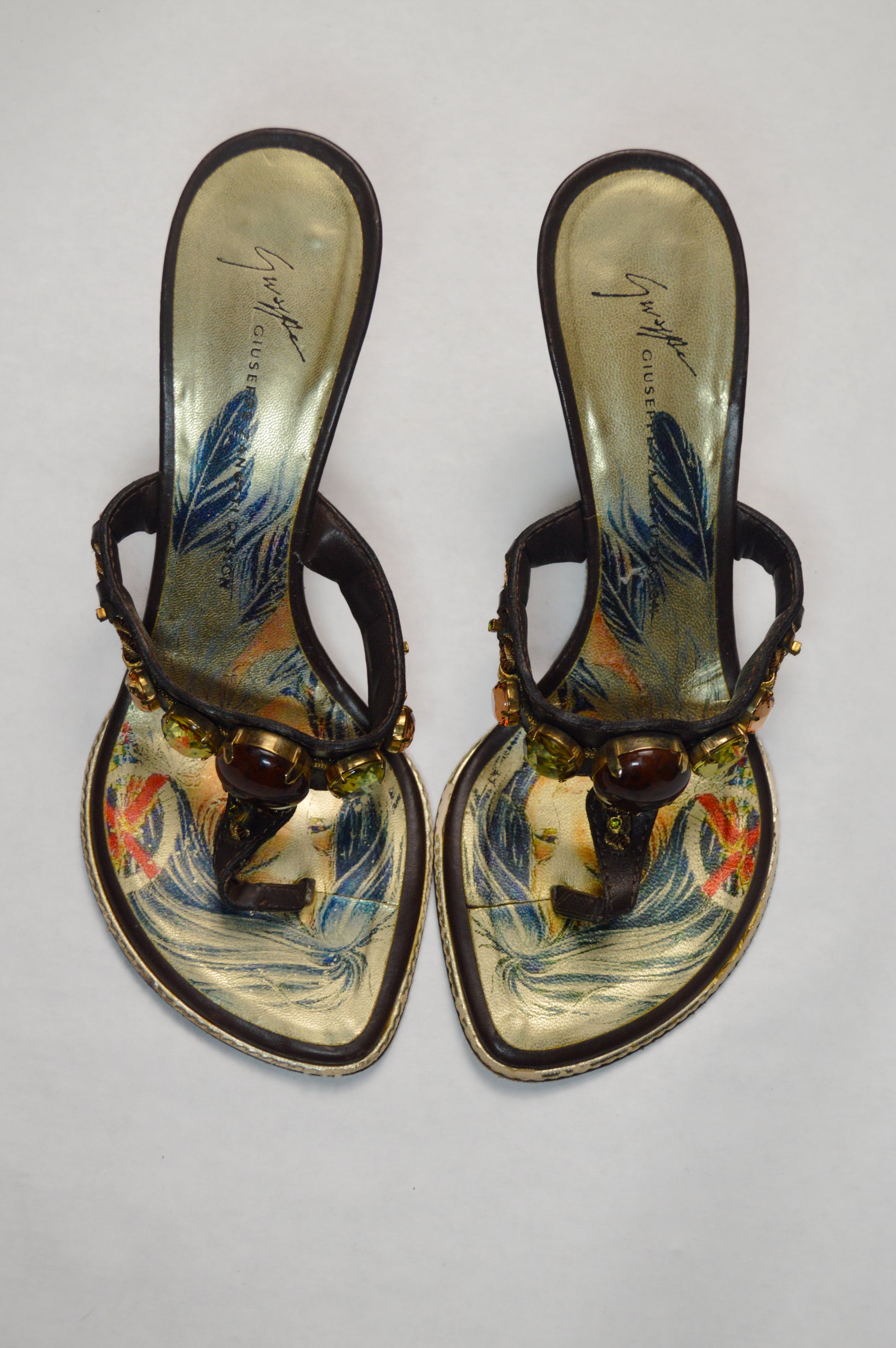 These one of a kind ocean themed pair of wedges are a must have. Printed on is an ethereal beauty with flowing hair and vibrant colors, and each heel is decorated with a scale-like fish pattern. These shoes are quintessential to Zanotti’s creativity.